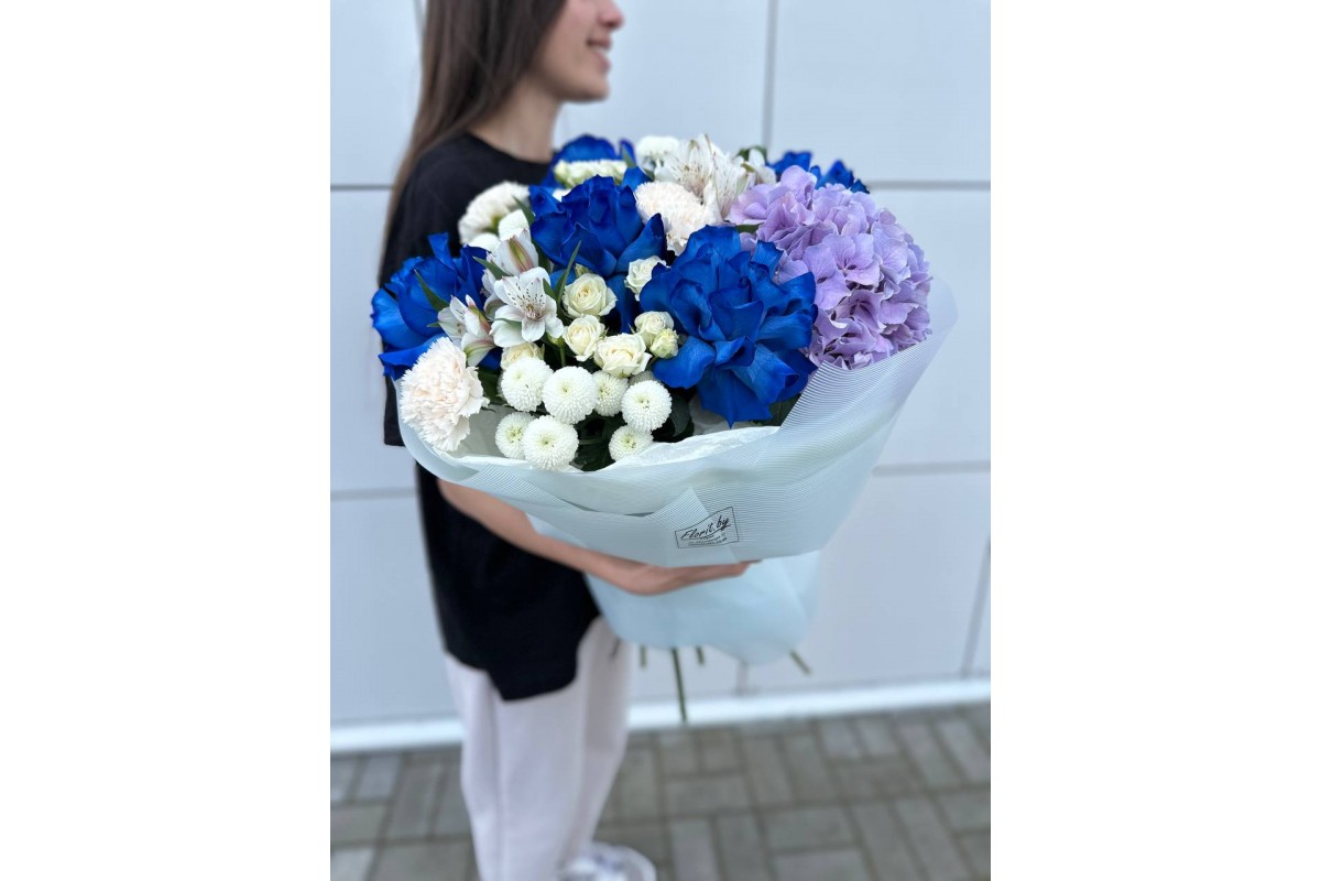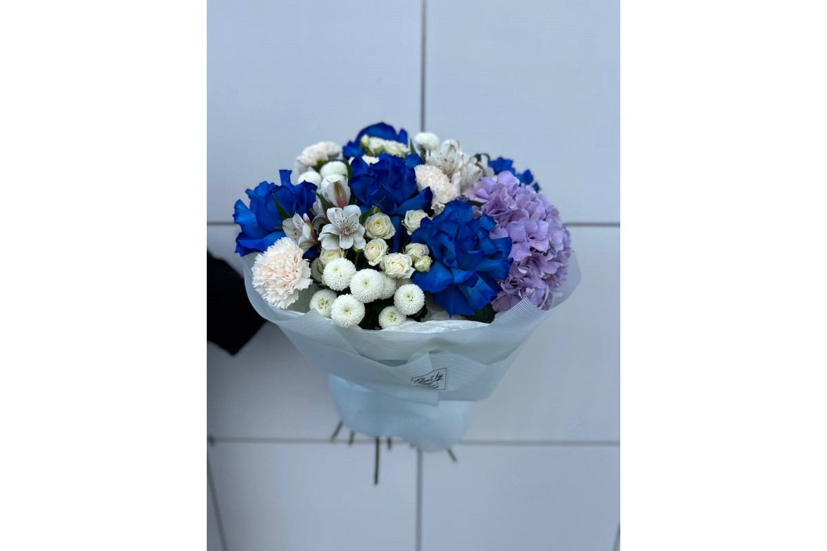 Состав: розы французские , кокосик , гортензия ,зелень , лента.