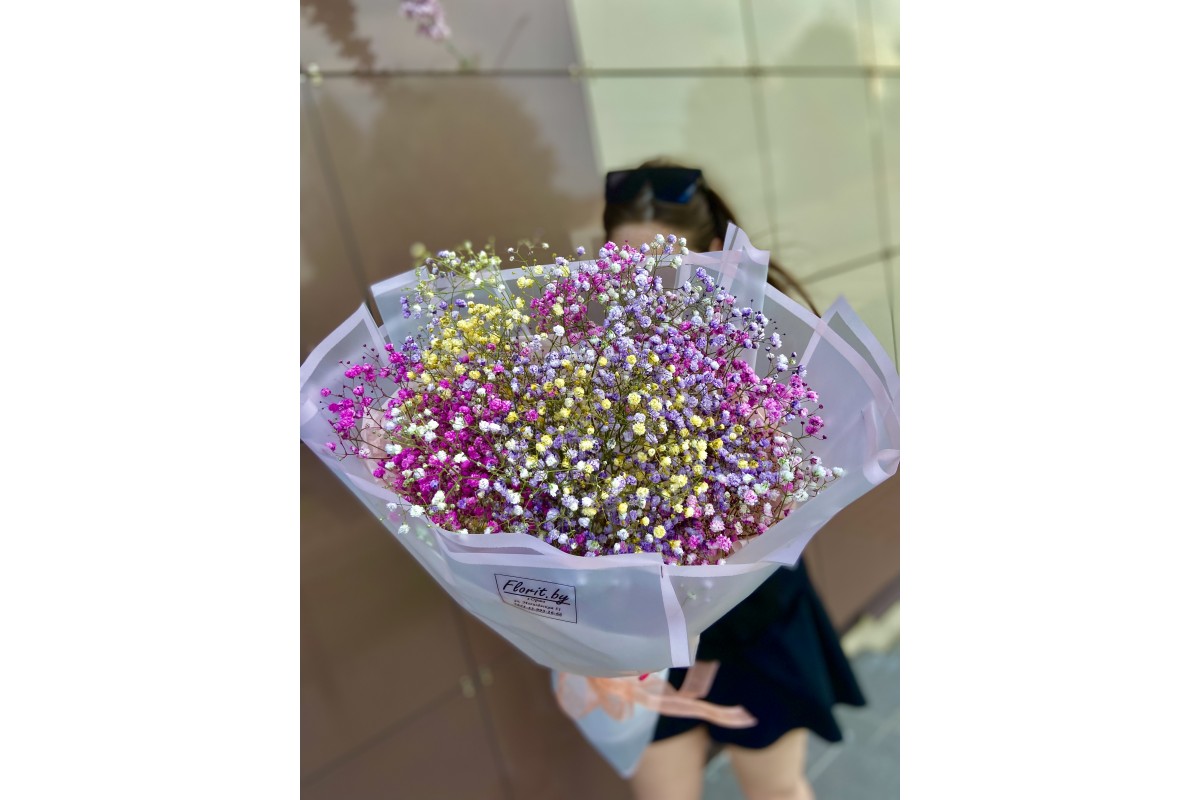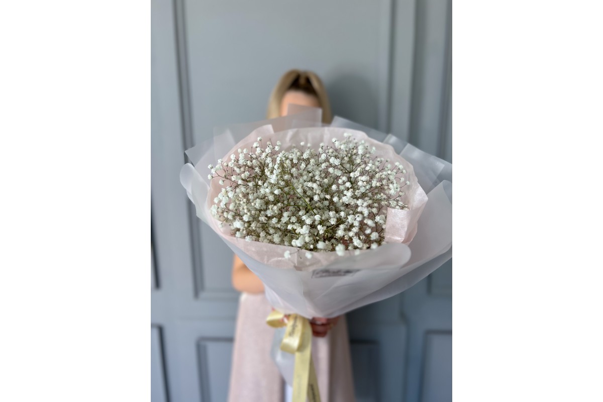 Состав: Букет из гипсофилы, упаковка, лента.