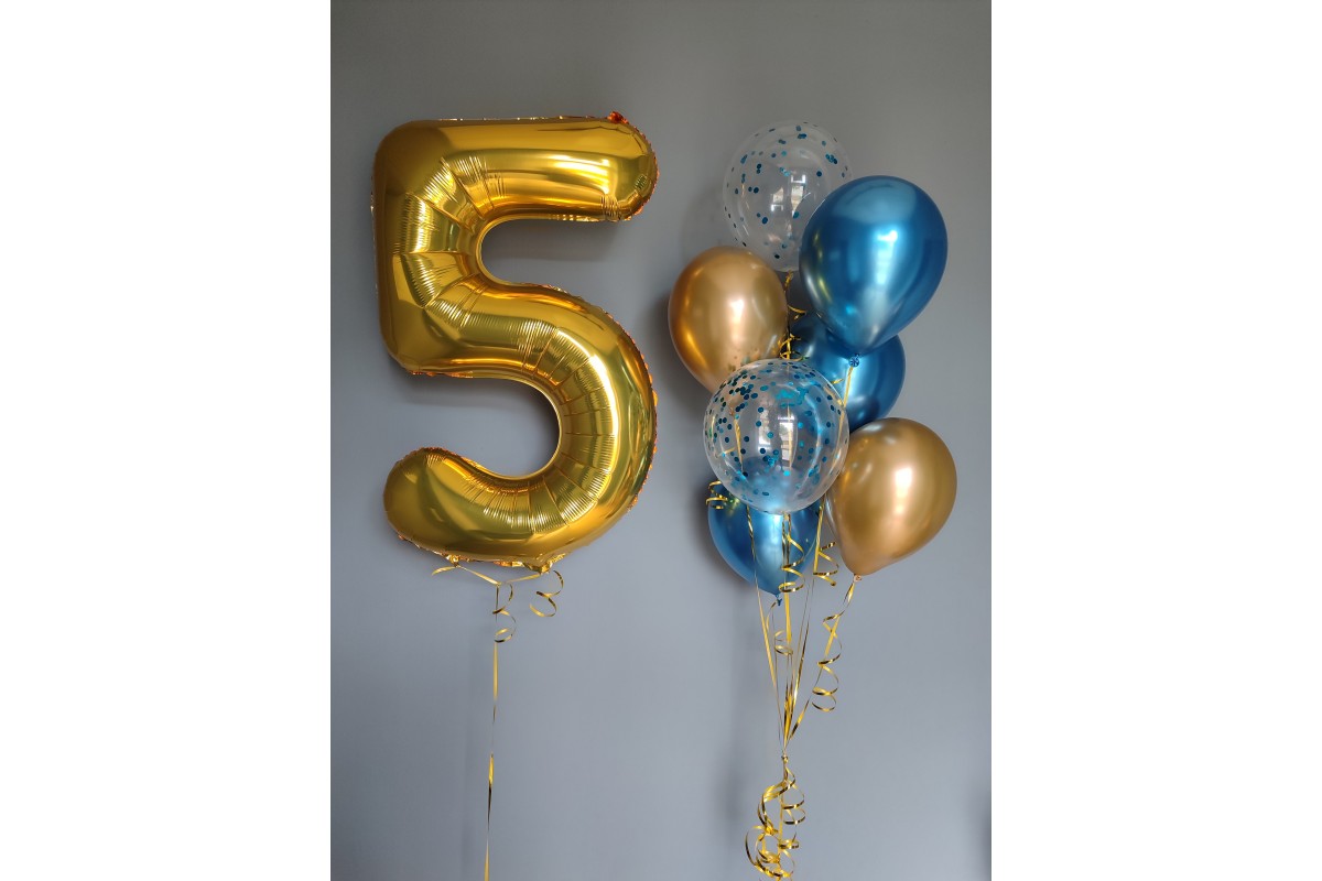 Состав: 1 фонтан из 7 шаров, цифра метровая.