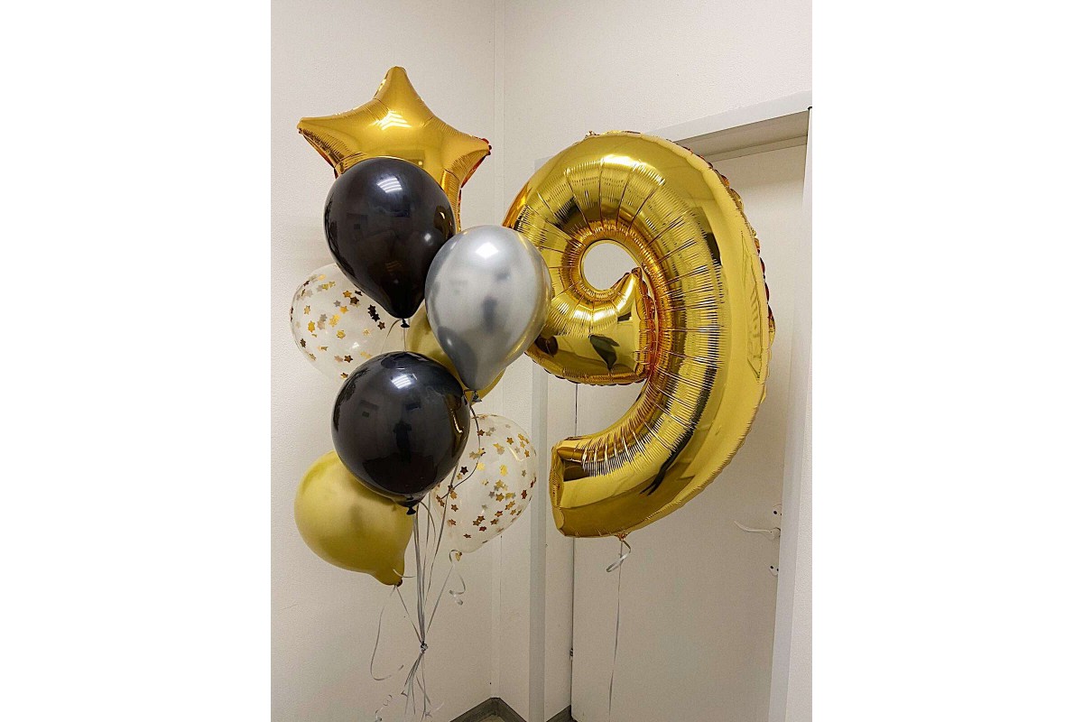 Состав: 1 фонтан из 8 шаров и цифра метровая.